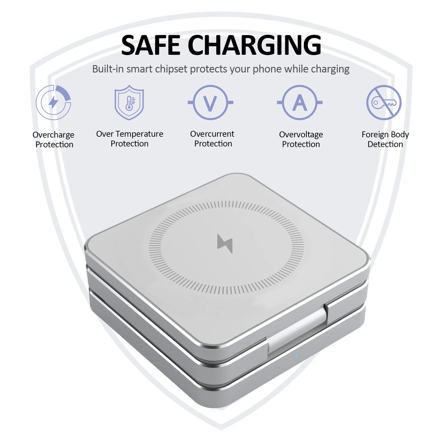 * It is capable of wirelessly charging Qi-standard mobile phones, whether they are Android or for Apple models. With its advanced magnetic technology, it ensures a stable and efficient charging process for your smartphones.