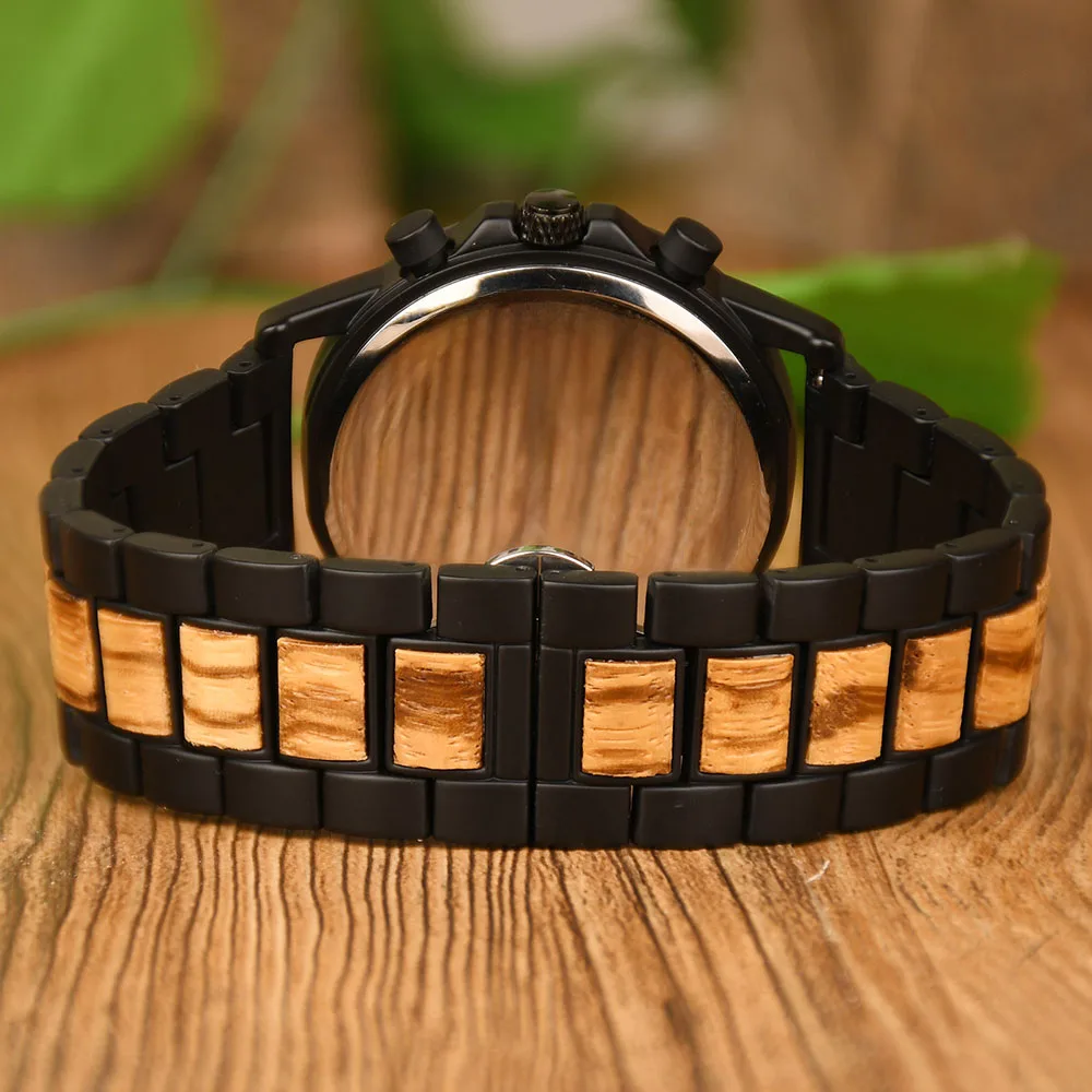Discover the perfect fusion of natural elegance and modern precision with this Zebra Wood Quartz Chronograph Watch for men.