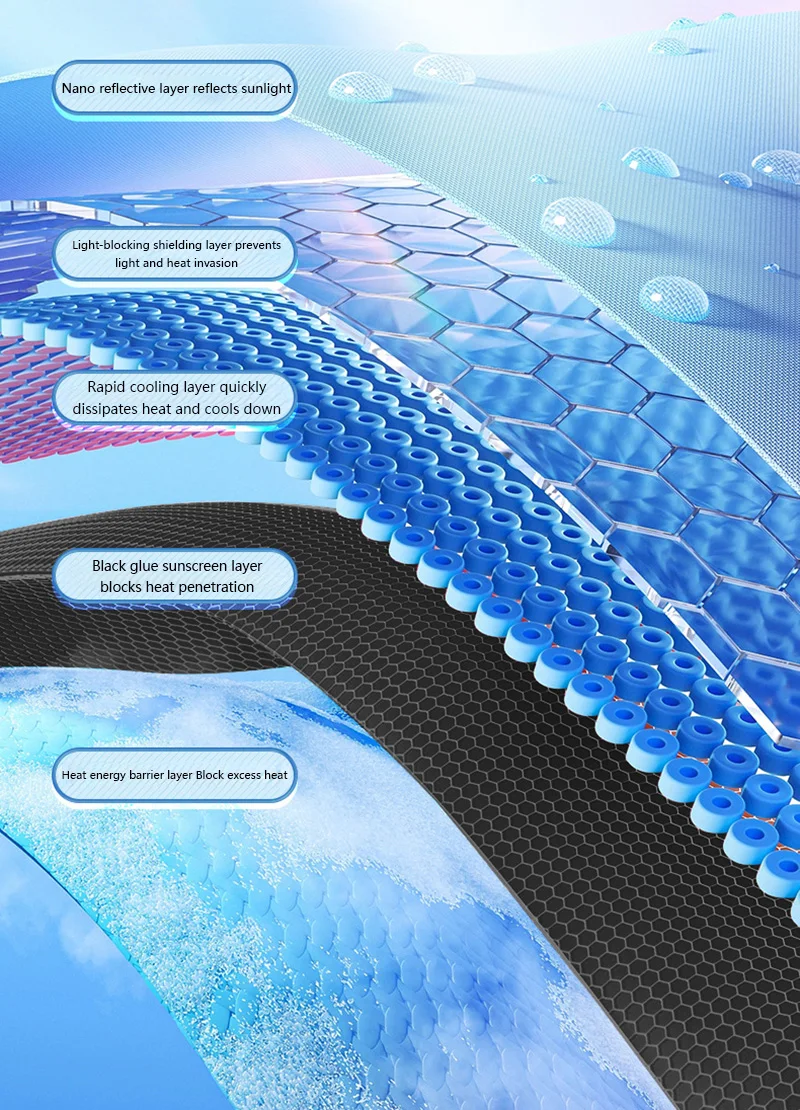 2. Three layer design: The three-layer design not only provides a wide coverage area, but also makes the umbrella easy to transport and store.